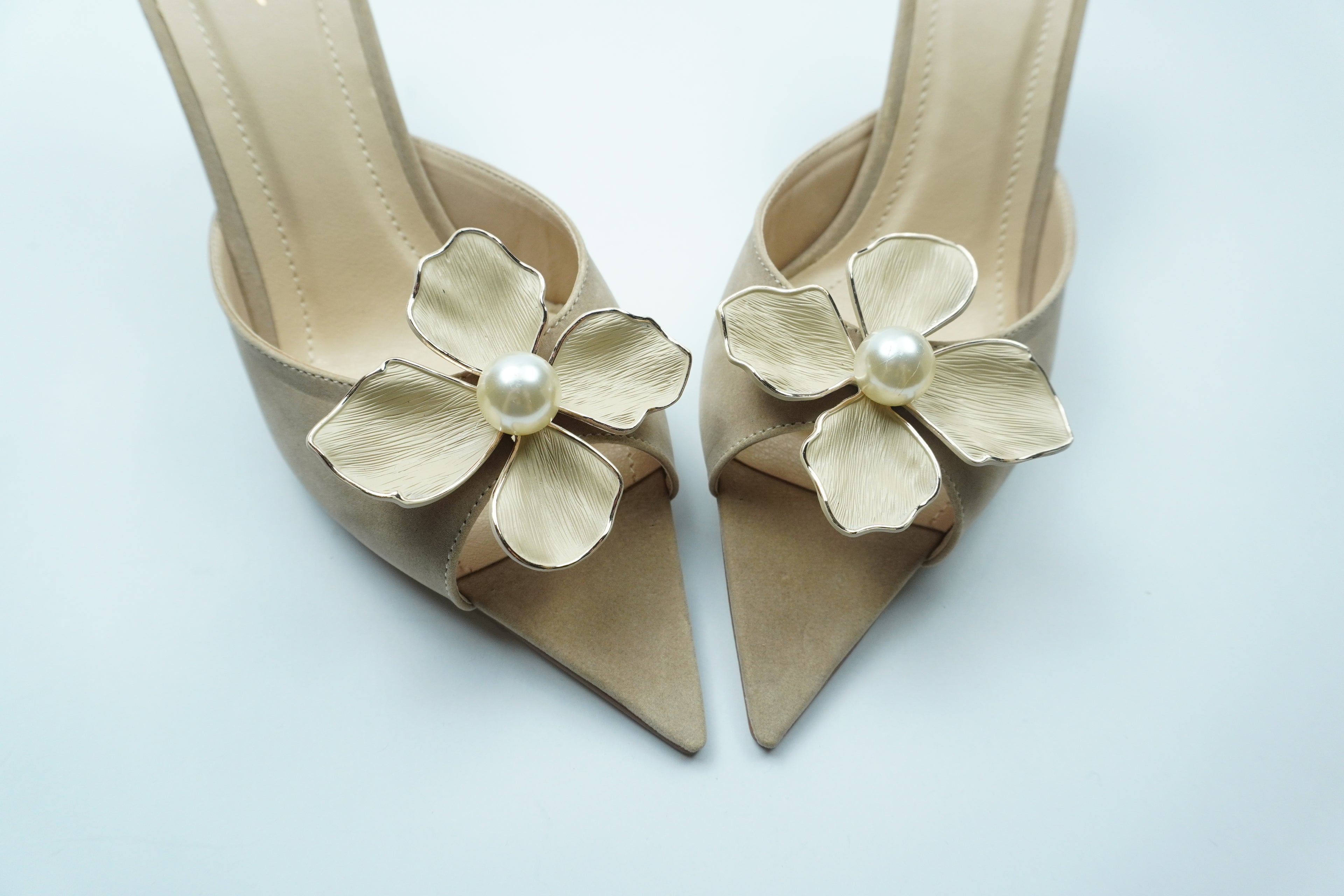 Un modèle qui révèle toute la féminité et la douceur de la femme, sublimé par une fleur délicate et un talon fin parfaitement élégant.